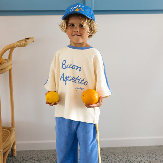 Buon Appetito Mid Sleeve Tee Buttercream / Blue