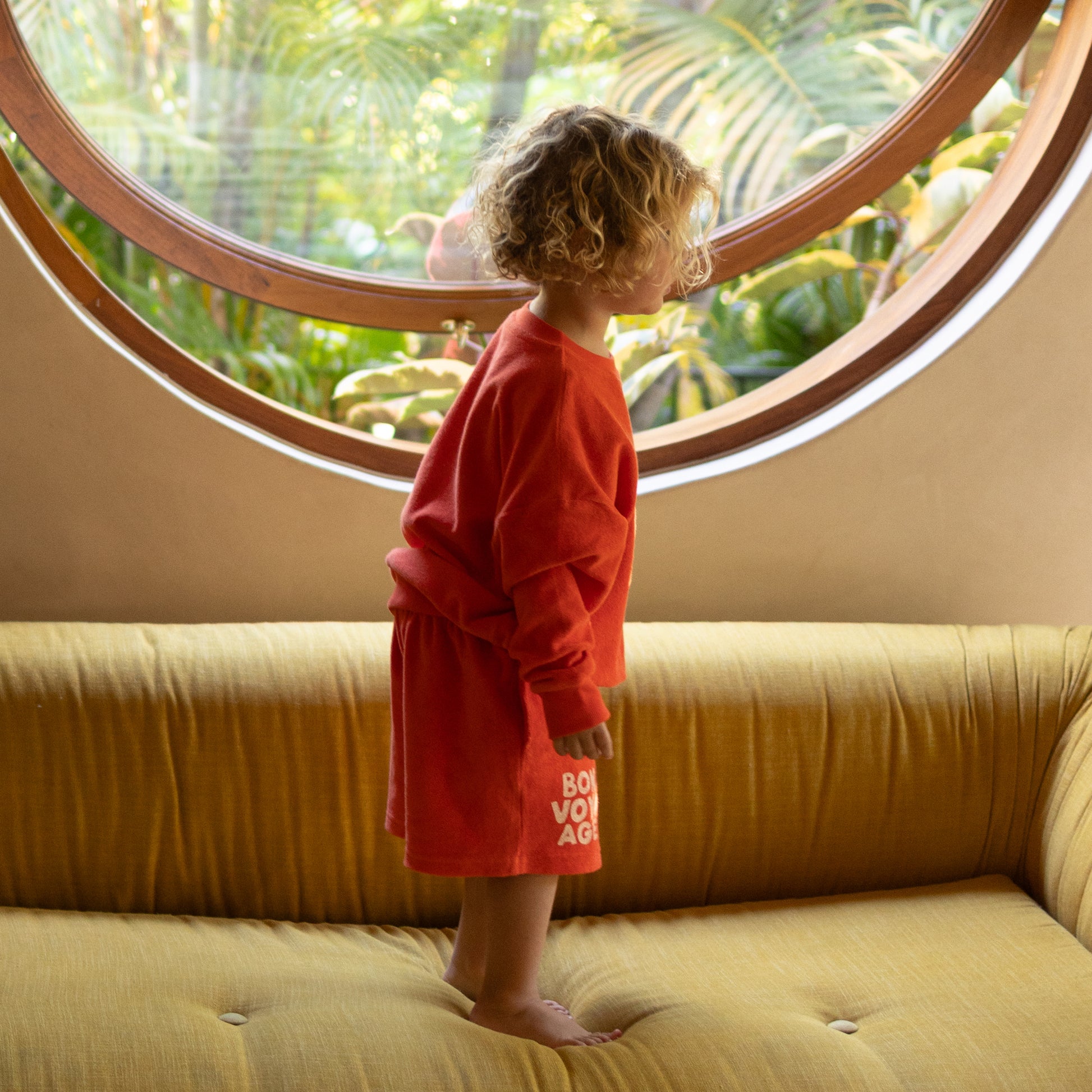 The Bon Voyage Sweater is made from 100% cotton terry towel with a thick yet soft hand feel. The print is inspired by the feeling we get when we are heading off on a journey, somewhere magical to create memories together, Bon Voyage!