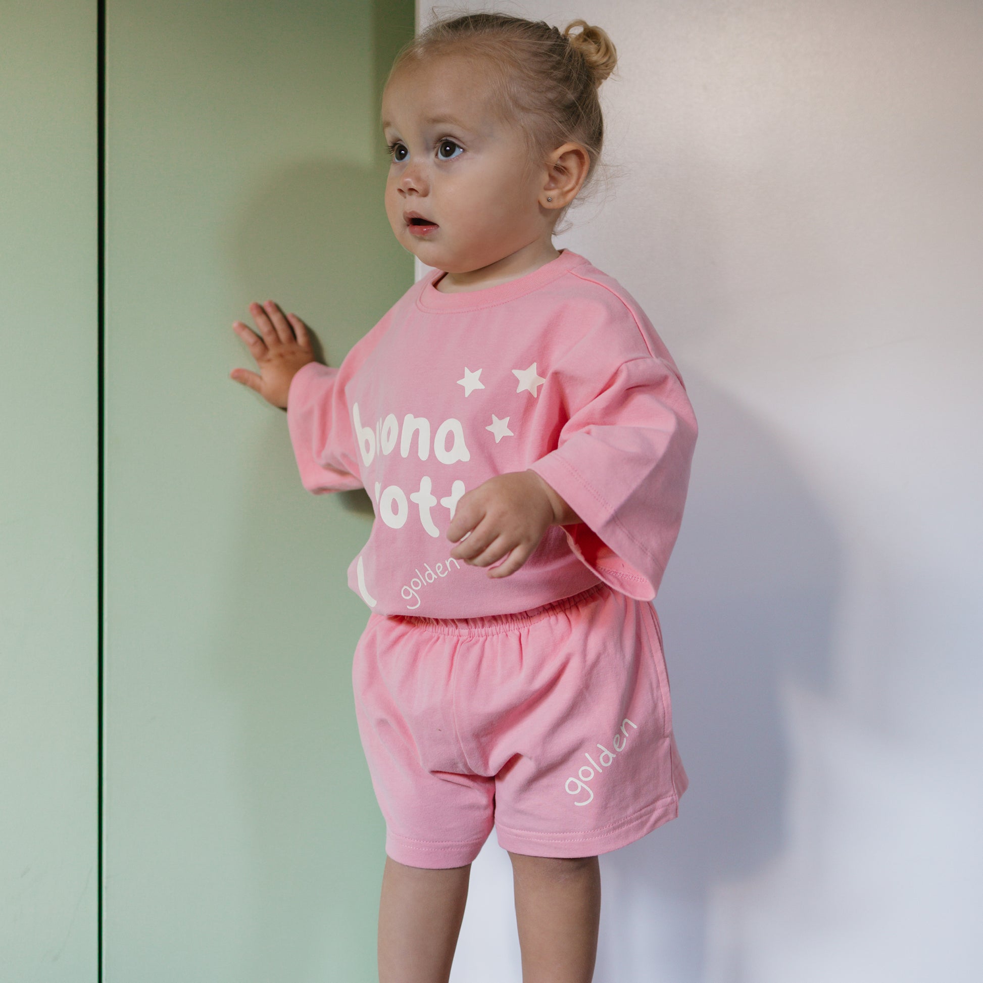This set consists of a T-shirt and shorts. The T-shirt features soft, stretch fabric with dropped shoulders and ribbing at the neckline. The Shorts have two front pockets for collecting treasures and a soft, elasticated waist.