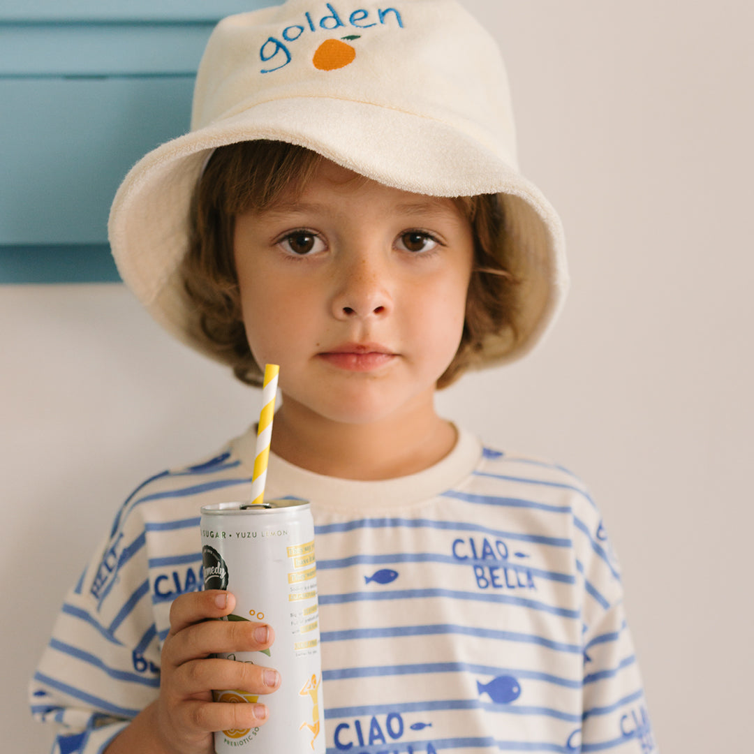The Ciao Bella Pesci Tee is made from 95% cotton jersey, 5% spandex with an incredibly soft hand feel. The striped print is inspired by our favourite place, Italy! Long days searching for fish in the deep blue sea.