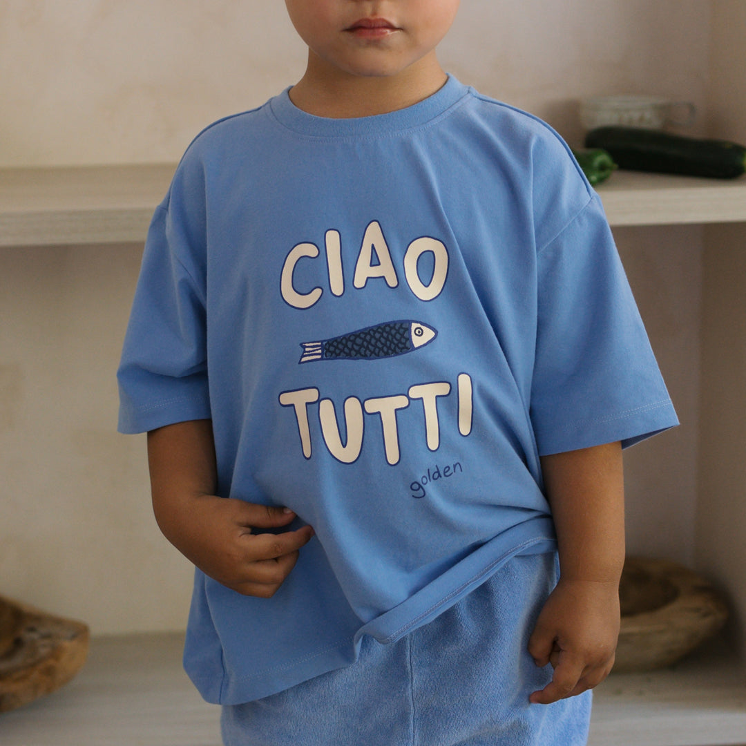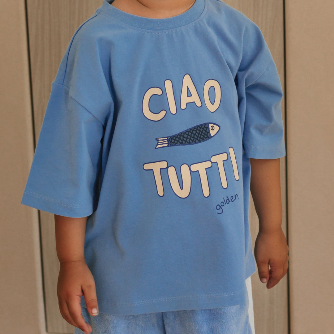 Ciao Tutti Pesci Mid Sleeve Tee Pool Blue