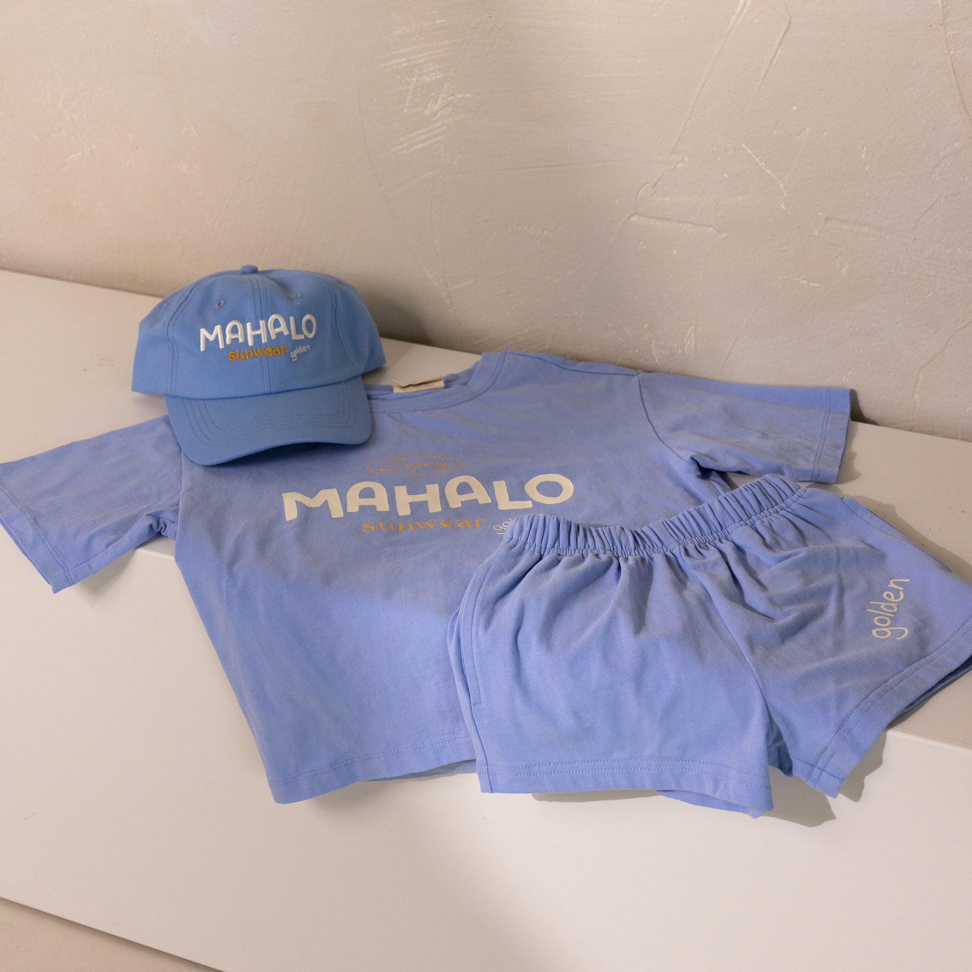 The cap features the word ‘Mahalo’ (to show gratitude in Hawaiian) embroidered to the front with the Golden logo embroidered to the back. It is adjustable with a brass clasp to the back.