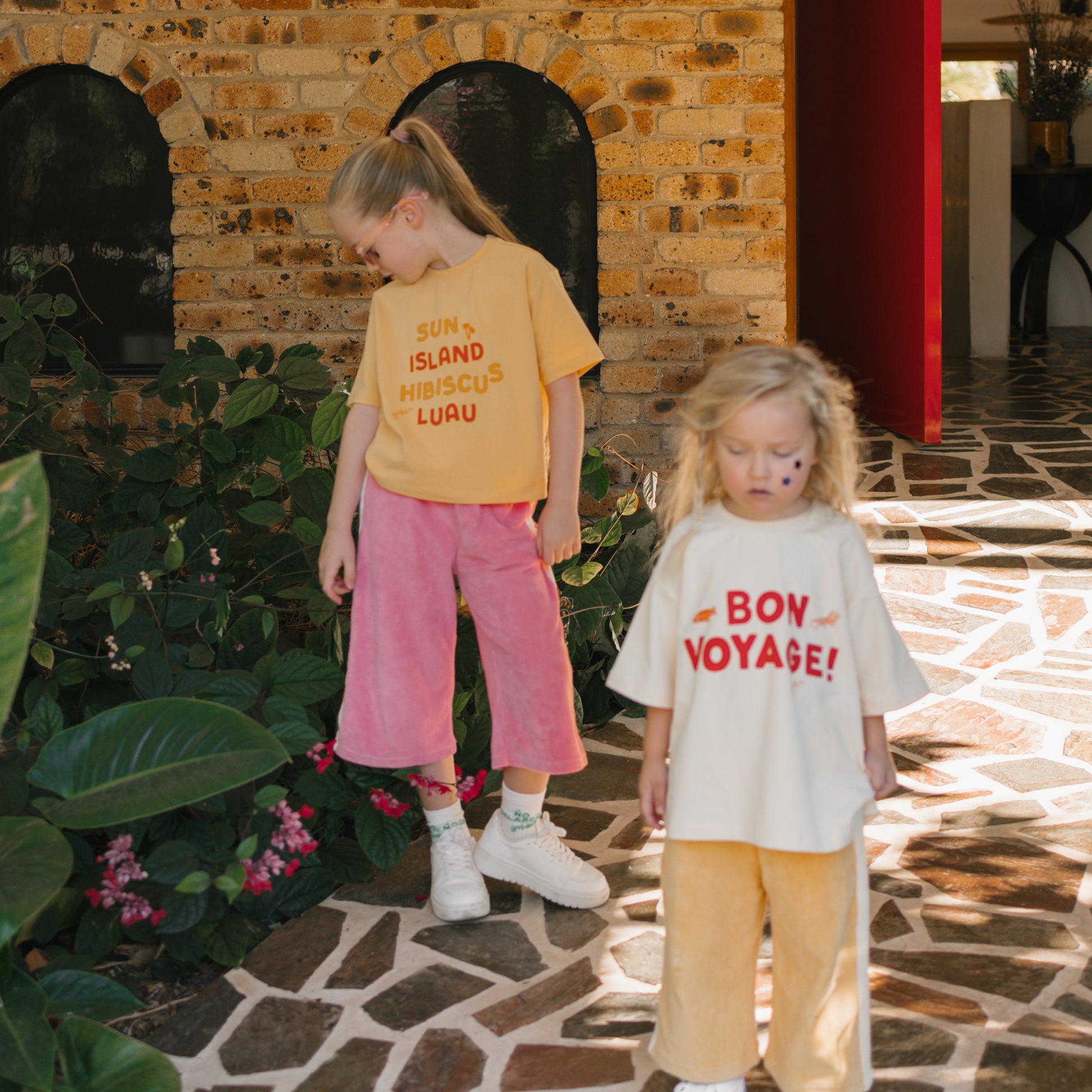 Shown here with the Bon Voyage relaxed pants on Remy, and the Swan wide leg pants on Coco.