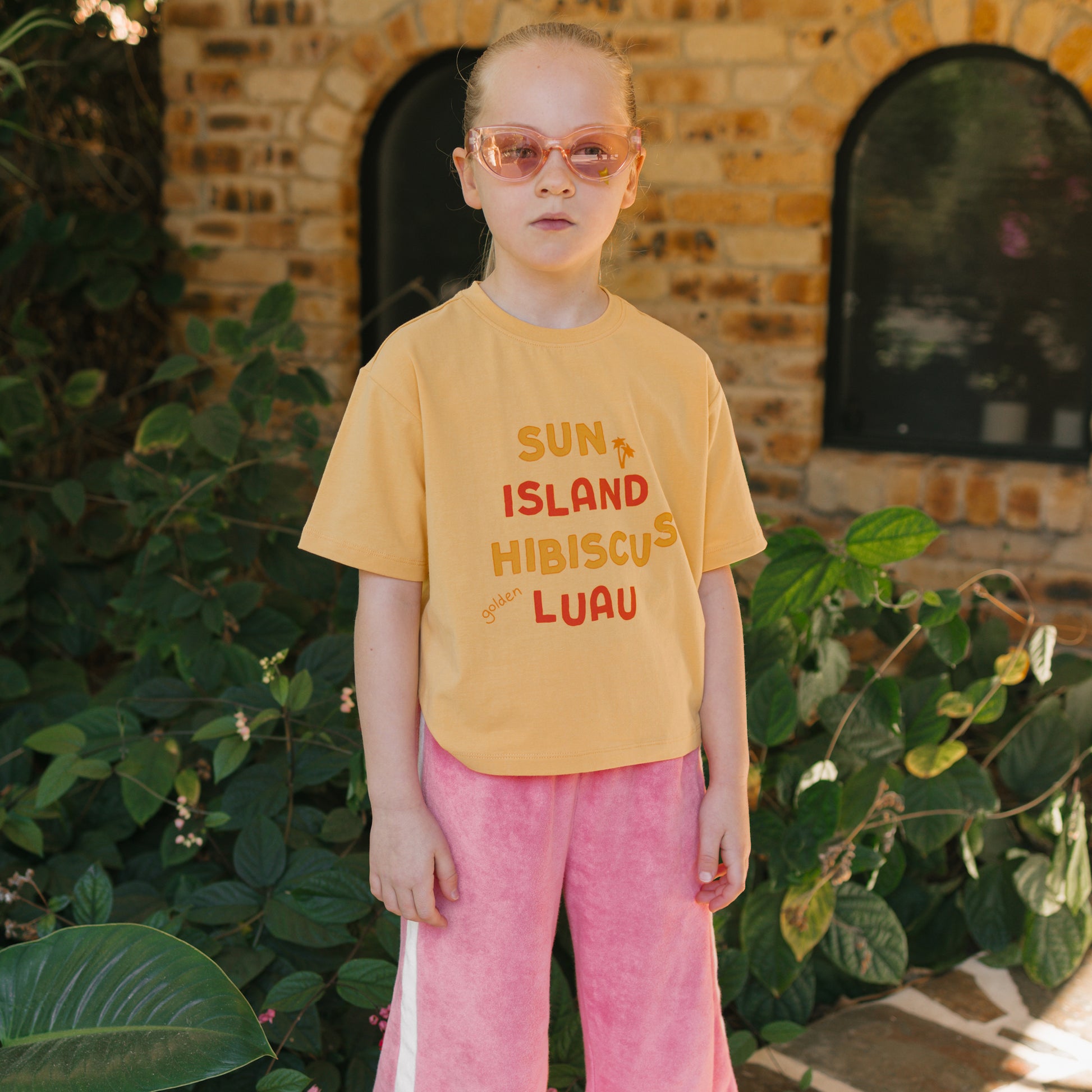 The Sun Island Tee is made from 95% cotton jersey, 5% spandex with an incredibly soft hand feel. The print is inspired by our love of being on a tropical holiday, somewhere far away, from Oahu to Kauai by the deep blue sea listening to the sounds of Hawaii.